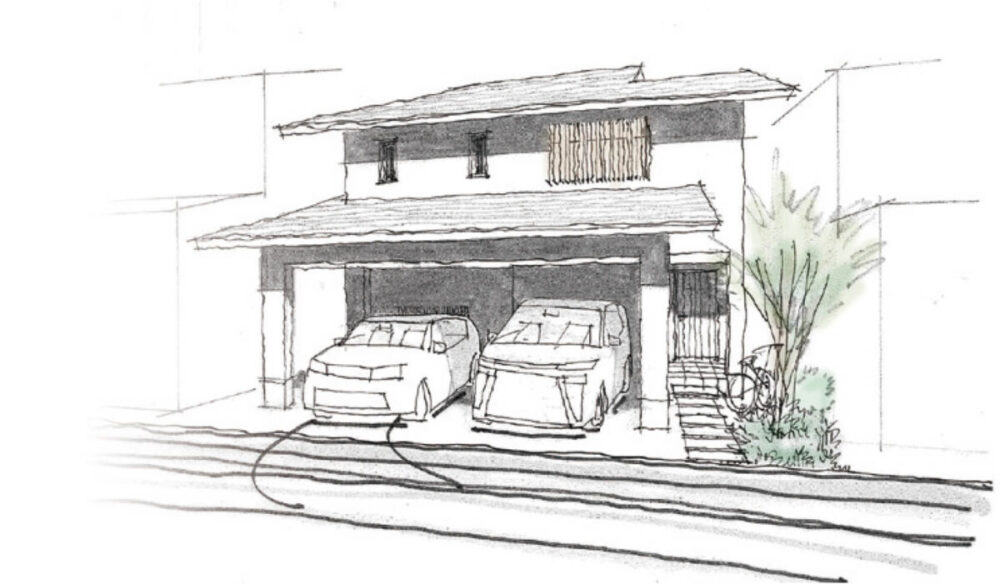 インナーガレージは雨にぬれず、玄関に入ることができます。