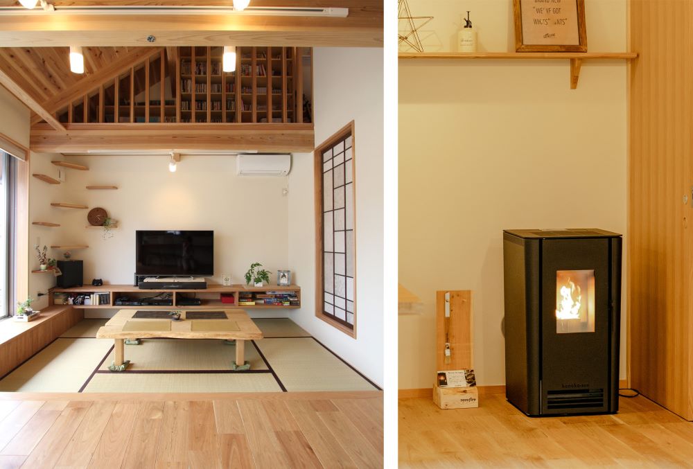 季節の移ろいを感じながら、心穏やかな日常を過ごせる住まいです。街並みに馴染む落ち着いた外観、無垢材を使った自然素材のやさしさに包まれる室内。炉を備えた和室や小下がりのタタミスペースでは、炎を眺めながらくつろぐ時間が流れます。夏の風、冬の陽だまり――自然の恵みを感じられる空間を、ぜひご体感ください。