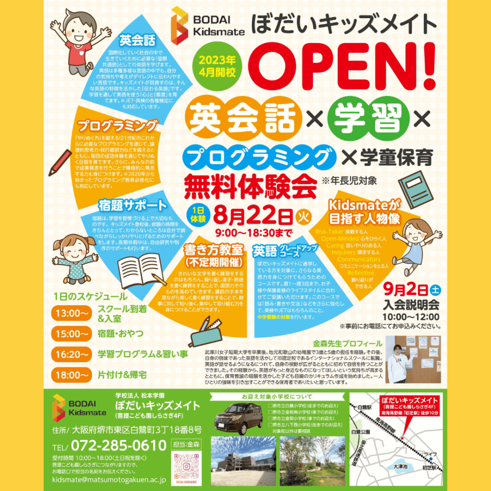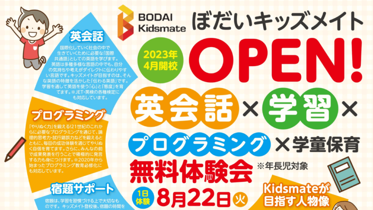 年間1,600時間と言われる放課後の時間を楽しく有意義に過ごせるよう子どもたちをサポートしている、ぼだいキッズメイトのご紹介です♪