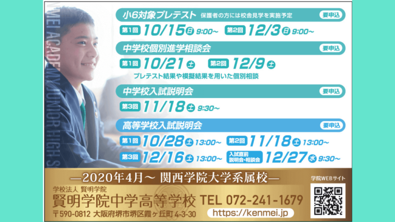 本日は受験生や受験を考えている皆様に、関西学院大学系属校である賢明学院中学高等学校をご紹介します!