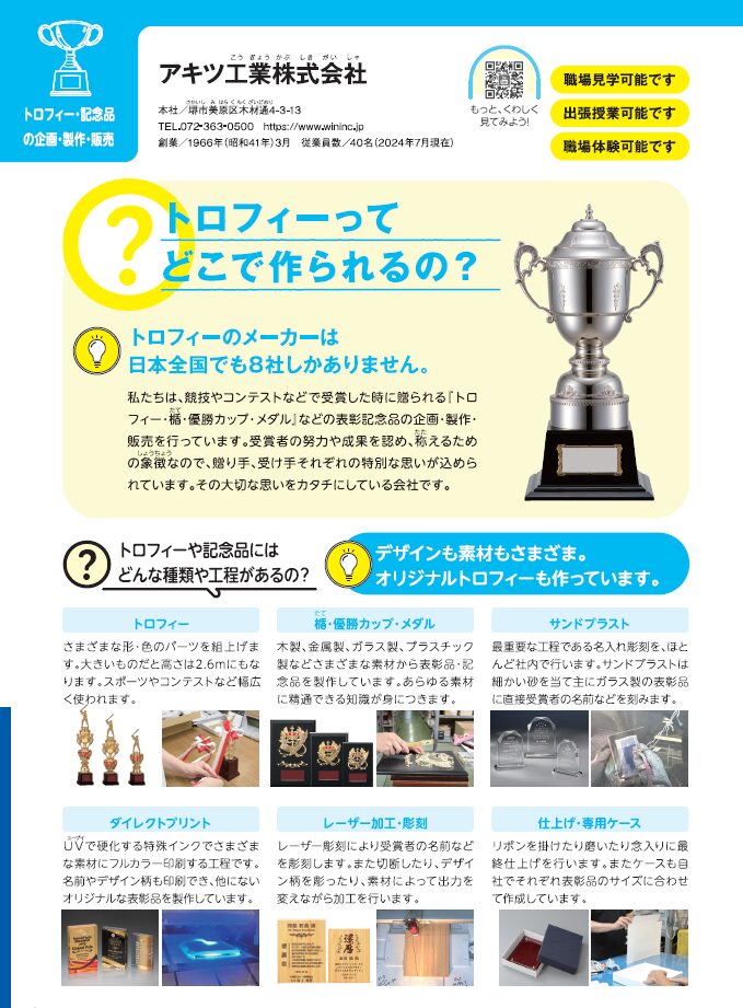 堺市美原区で競技やコンテストで贈られるトロフィー・盾・優勝カップ・メダルなどを作っている会社です。