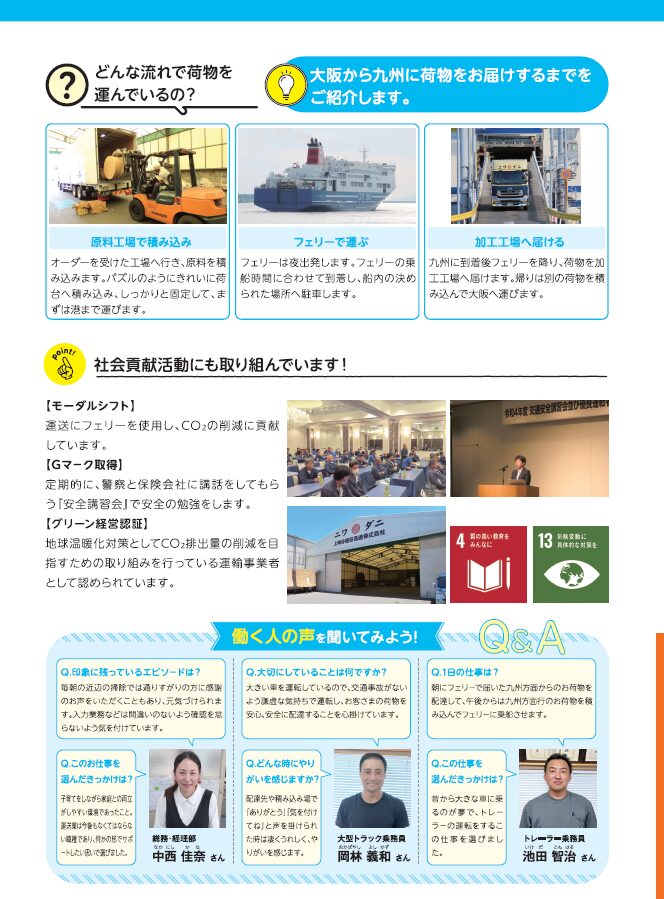 フェリーで運ぶ『モーダルシフト』を使うことで、CO2の削減にもなります。