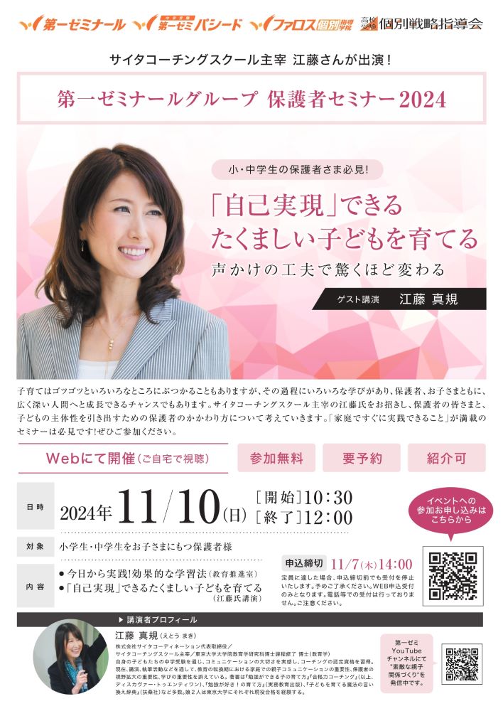 第一ゼミナールでは、小学生中学生を持つ保護者様対象に