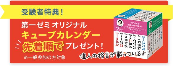 第一ゼミオリジナル「キューブカレンダー」を先着順でプレゼント!偉人の格言が載っています。