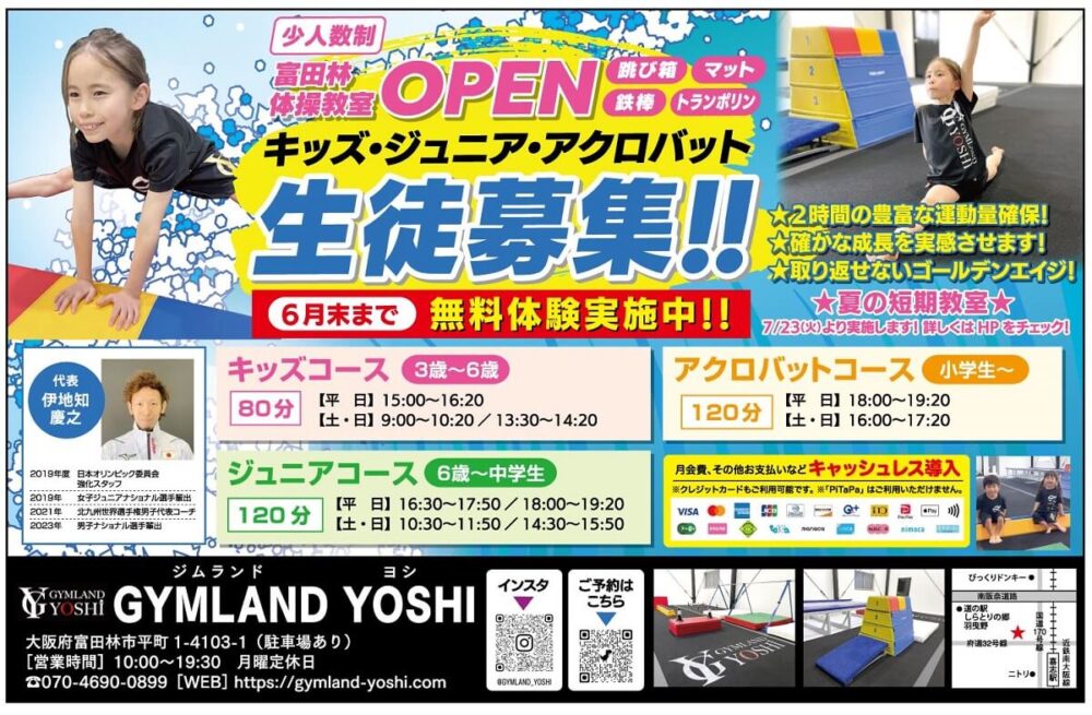 先日オープンした、3歳から通える体操教室『GYMLAND YOSHI(ジムランド ヨシ)』が6月末まで限定で無料体験実施中です!