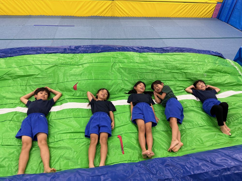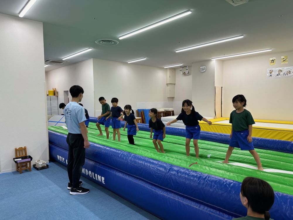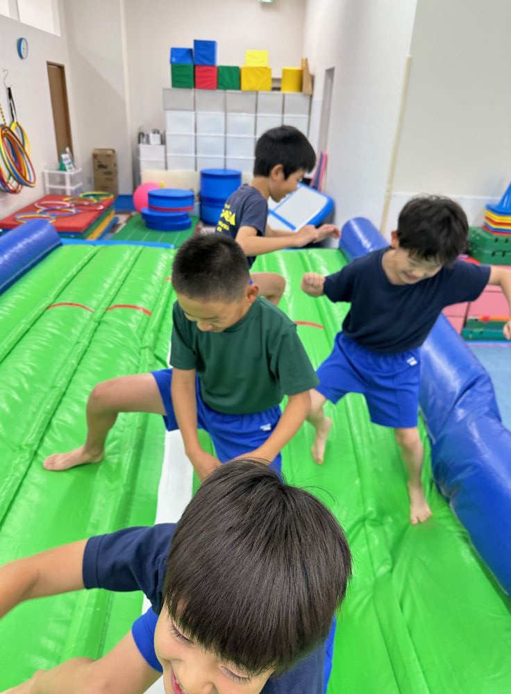 トランポリンをとんだり、マットでまわったりすることは、脳や言葉等の発達にも良い影響を与えます!