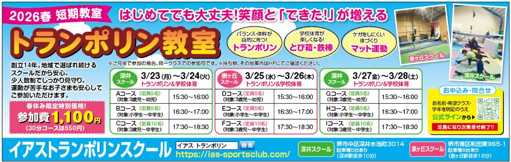■深井スクール:2026年3月23日(月)~3月24日(火) トランポリン&学校体育