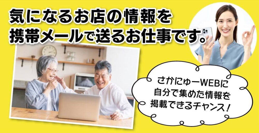 あなたの都合の良い時間で新店情報やイベント情報をキャッチ⇒現地に取材へ行き、記事を書く!もしくは記事を書くまで、もしくはお店の情報をメールで送るだけでもOK!
