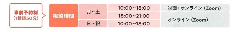 お一人につき約50分間、就職活動や今のお仕事の悩み、復職など何でも相談できます。※事前予約制