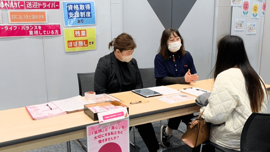 おしごと博では、採用担当者と直接お話ができる場です。気になることを応募する前に聞いてみましょう♪