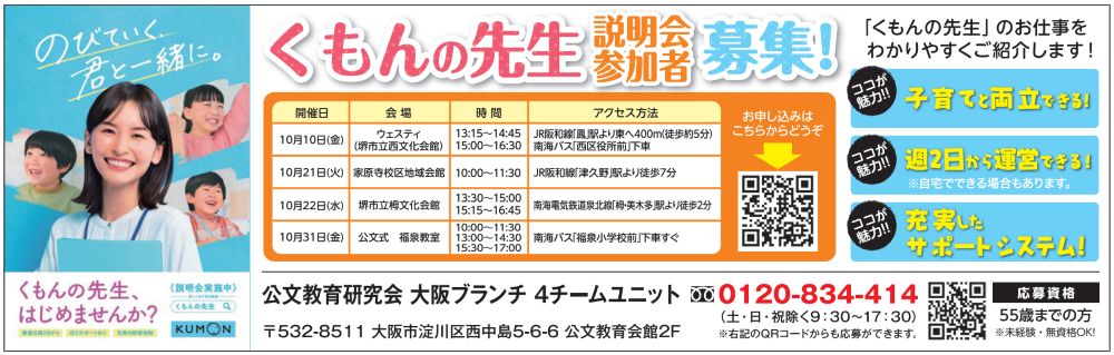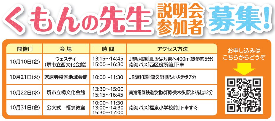 堺市で開催される「くもんの先生」説明会の最新情報をお届けします。