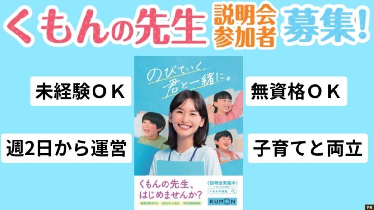 公文教育研究会が募集する「くもんの先生」は、55歳までの方を対象としており、未経験・無資格OK!!