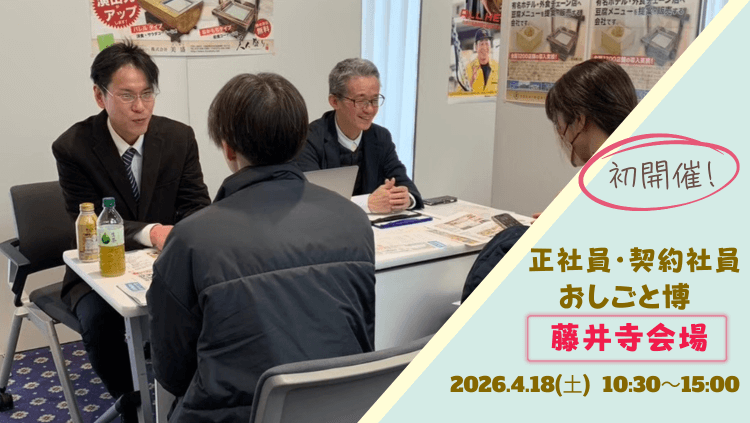 2026年4月18日(土)、イオン藤井寺ショッピングセンターにて、正社員・契約社員のお仕事をお探しの方のための就職イベントを開催します!