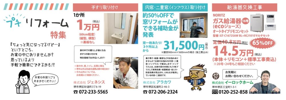 今回は、堺市の会社が手がける、お得な価格や補助金を活用できるリフォーム情報をまとめてご紹介します!