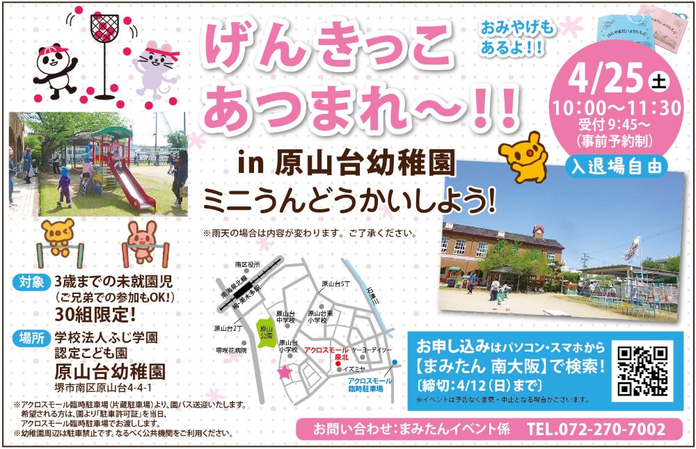 ◇場所: 学校法人ふじ学園 認定こども園 原山台幼稚園(堺市南区原山台4-4-1)