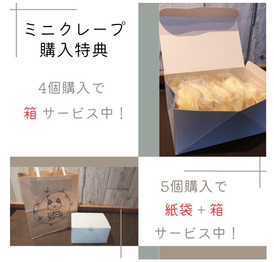 前日までに連絡をすれば、希望のミニクレープの取り置きも可能です。