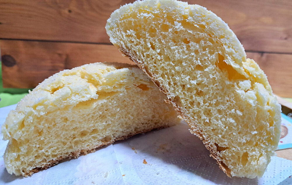 パン生地をすっぽり覆うクッキー部分、