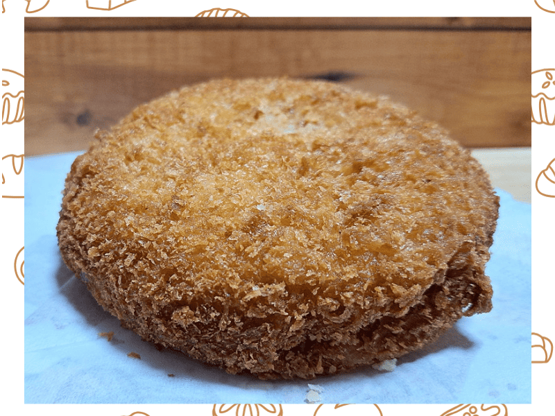細かいパン粉をパン生地にまぶされ、こんがりときつね色に揚がった外側。