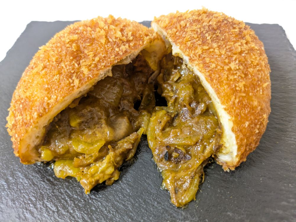 半分に切ると、中からトロットロの具材が流れ出てきました…!!まさしく、「カレーぱんは飲み物です」というキャッチフレーズの通り。
