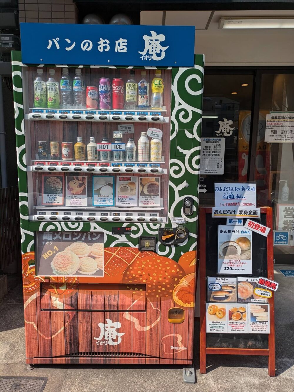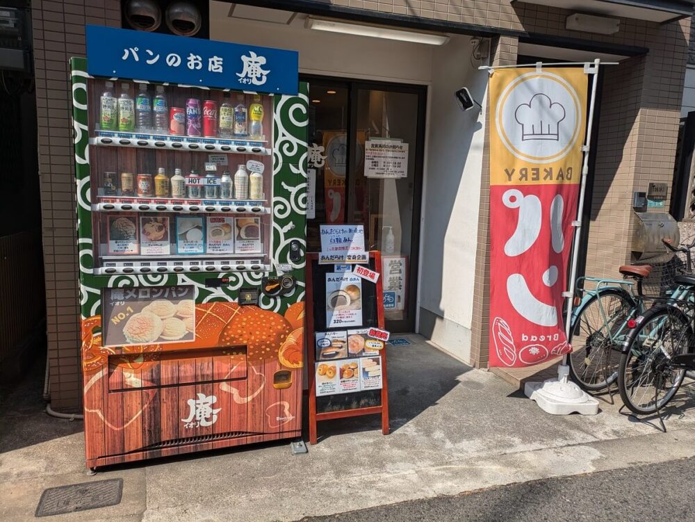 そして、この庵メロンパンは、お店の前の自動販売機でも購入することができます!!自販機でパンが買えるのは新鮮で楽しいですね!お店を見つける際の目印にもなりそうです。