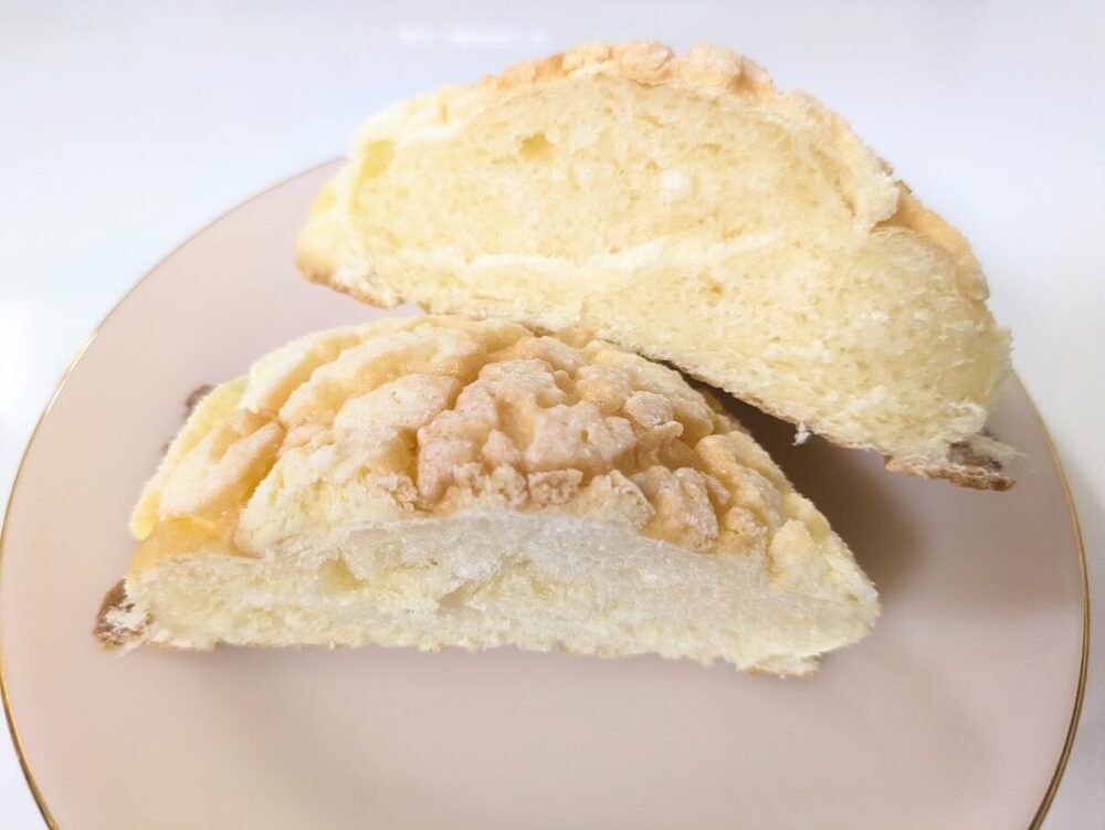 中はふんわり柔らかく、やさしい甘さ。しっとりとしていてパサパサ感が無いので、メロンパンの中身が苦手…という方にも是非おすすめしたいです♪