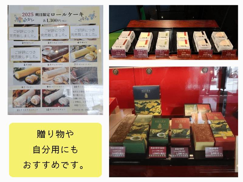 事前予約で完売する朔日限定ロールケーキも忘れずチェックしてくださいね。