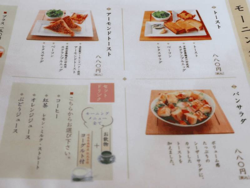 モーニングメニューは9時から11時、ちょっぴり遅めのモーニングタイムです。
