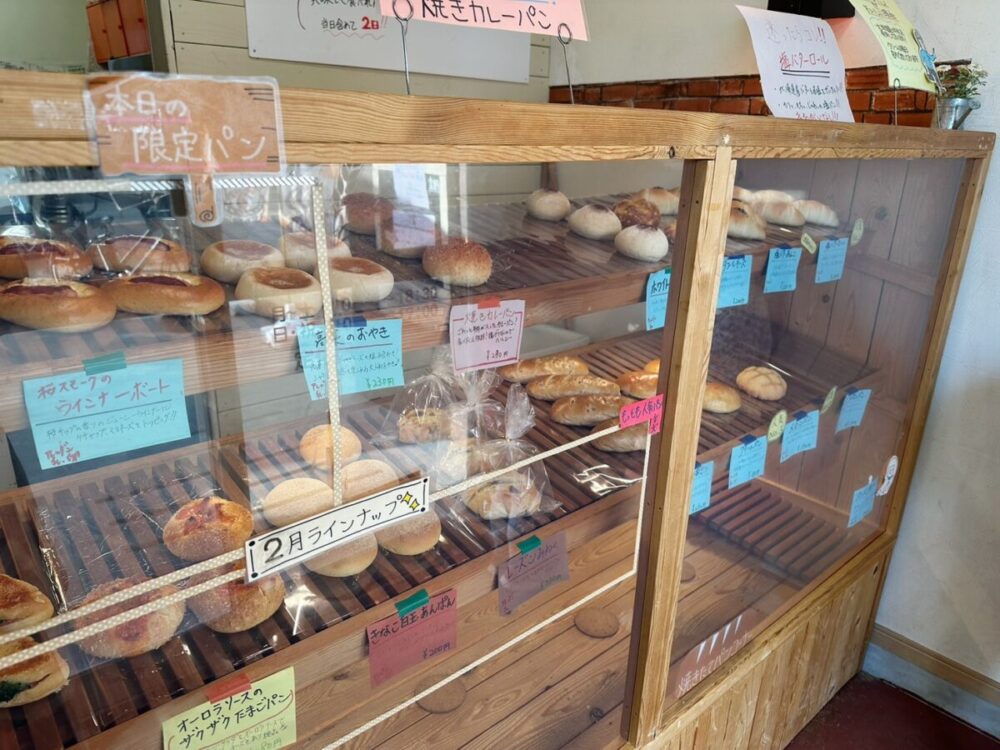 扉を開けると、木調の可愛らしいガラスケースに、丁寧に焼き上げられたパンたちがずらり。