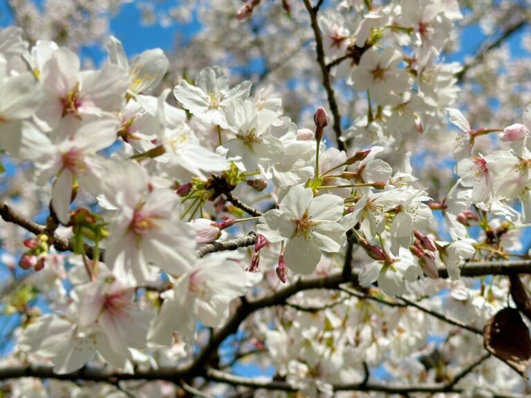 なんといってもその圧倒的な桜の数と、間近で花を愛でられることです。背の低い木や枝垂れ桜も多く、見上げなくても目の前に美しい満開の桜の花が咲き誇ります!