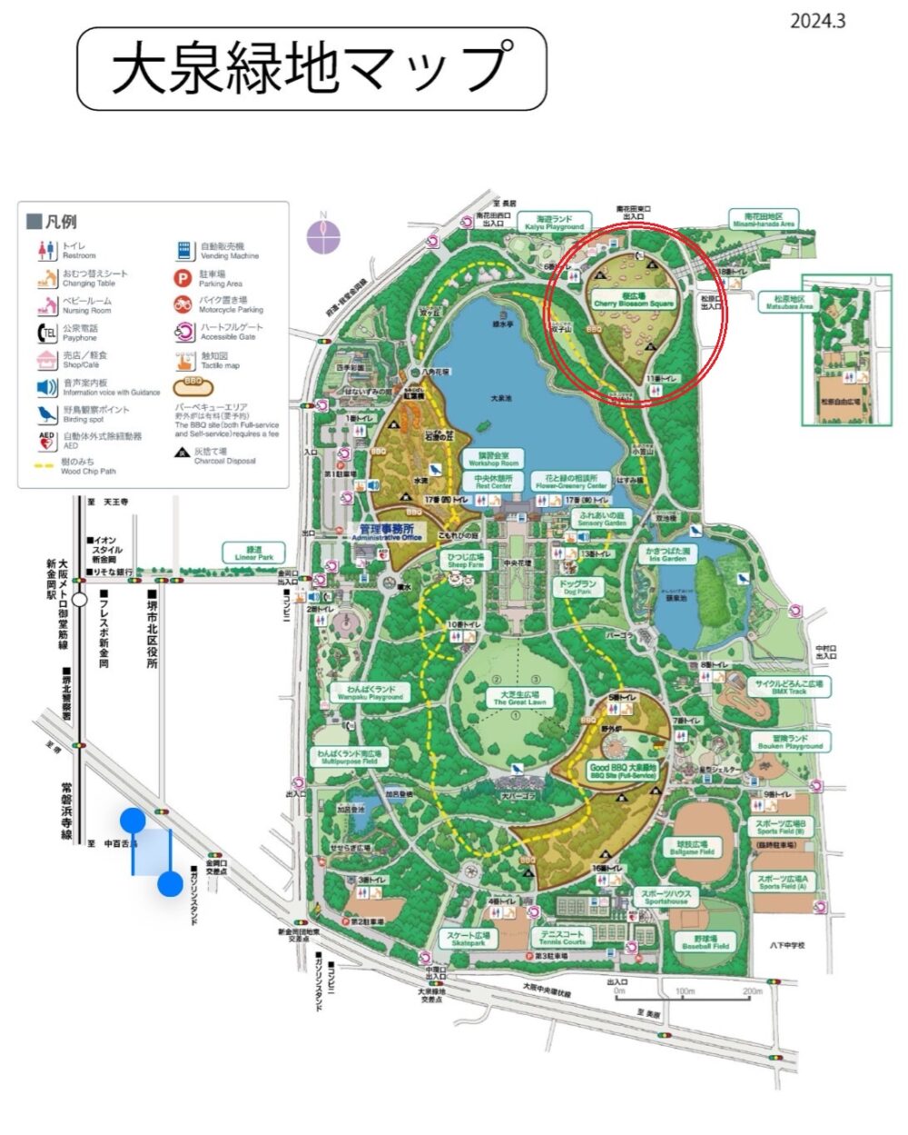 堺市にある広大な公園、大泉緑地。その中でもひときわ桜の美しさを誇るのが「桜広場」です!