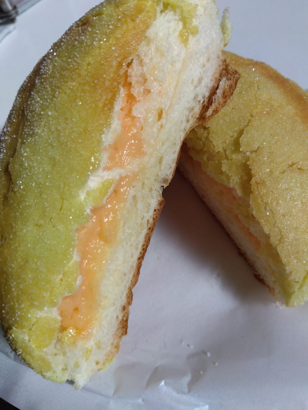 周りのサクッと甘い生地も美味しいのですが・・・中の夕張メロン果汁を混ぜ込んだクリームがなんともいえない美味しさ♡