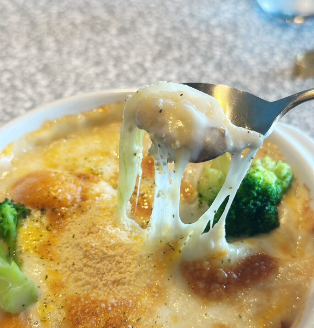 チーズがたっぷりでとろとろなのがたまらない一品!シーフードの旨みが溶け込んだ熱々のドリアは、心も体も満たしてくれます。