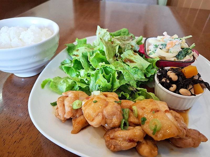 「日替わりランチ」、てりやきチキンと小鉢2種・ご飯付きで700円!