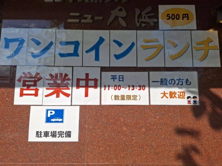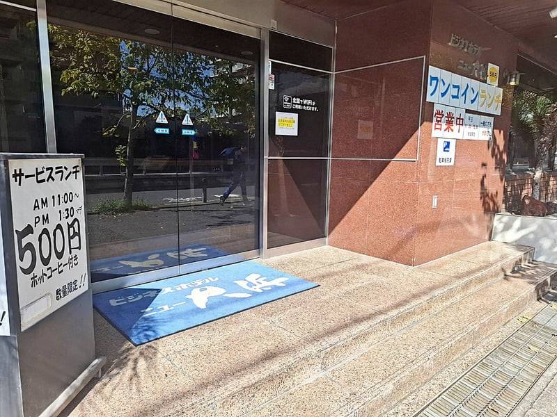 旧26線沿いにある「ビジネスホテルニュー大浜」では、ワンコインランチが食べられます。