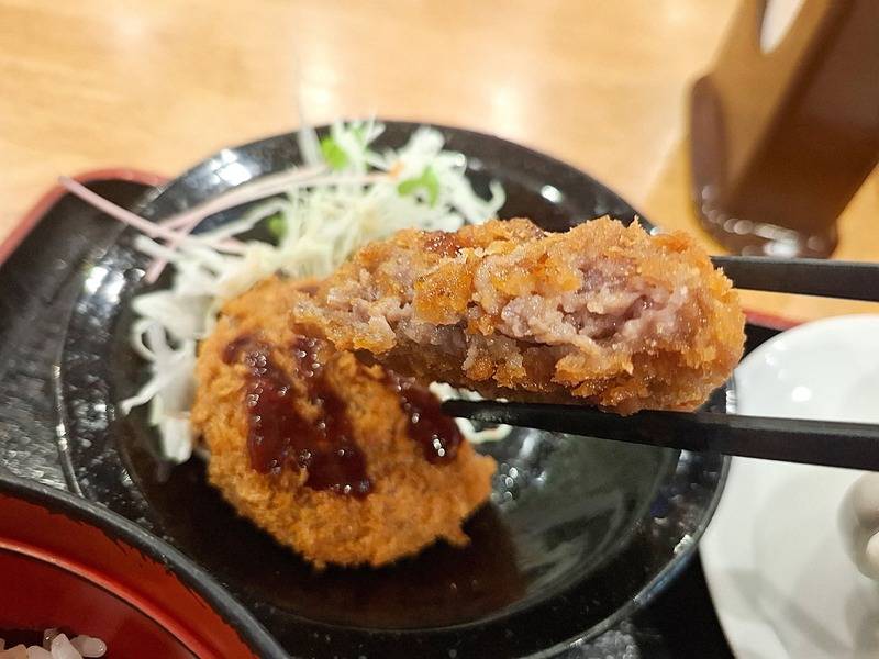 揚げたての熱々メンチカツは、ザクザク食感・肉汁ジュワ~です。