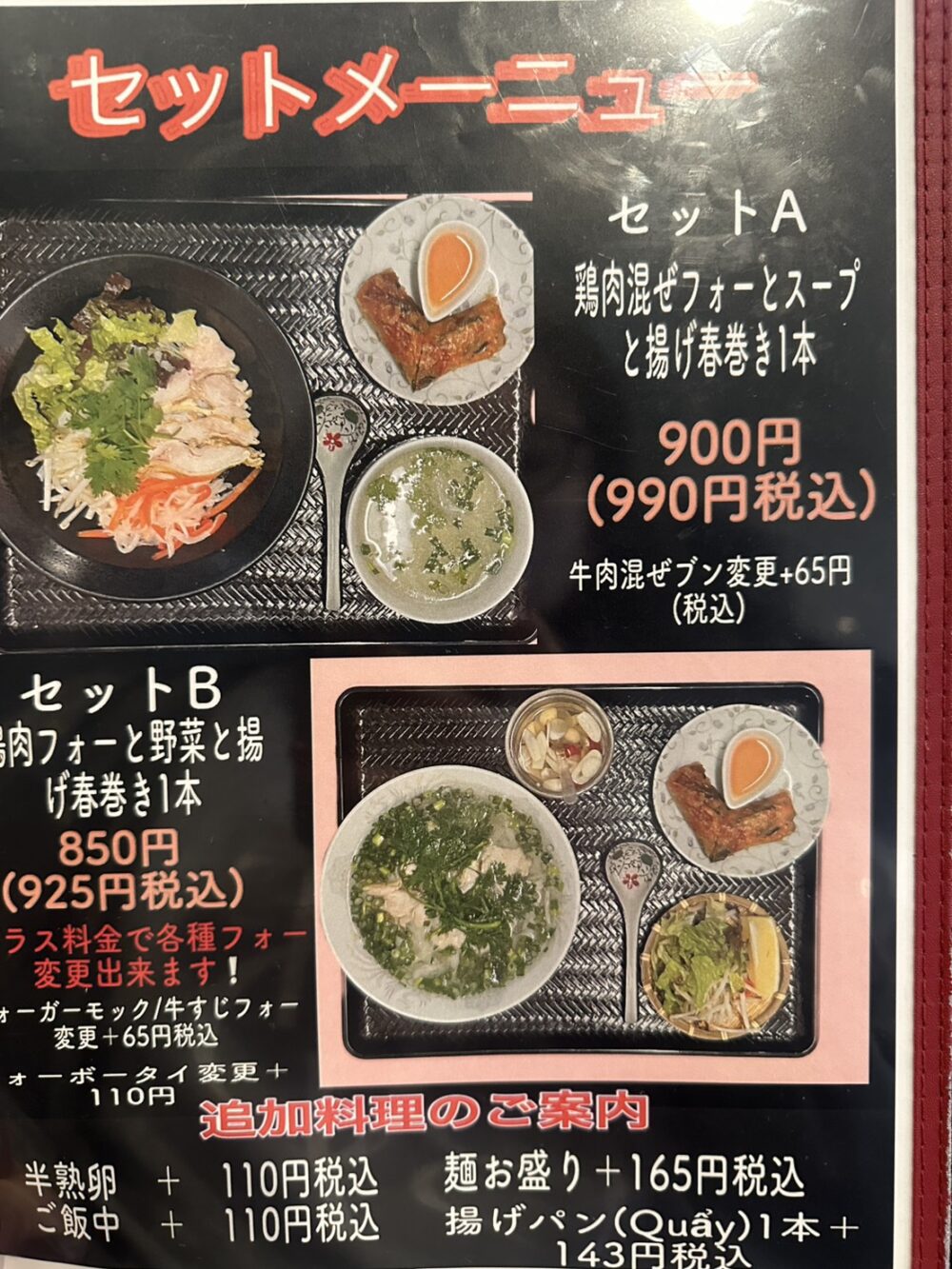 今回注文したのは、人気の「セットB 鶏肉フォーと野菜と揚げ春巻き1本(925円)」。