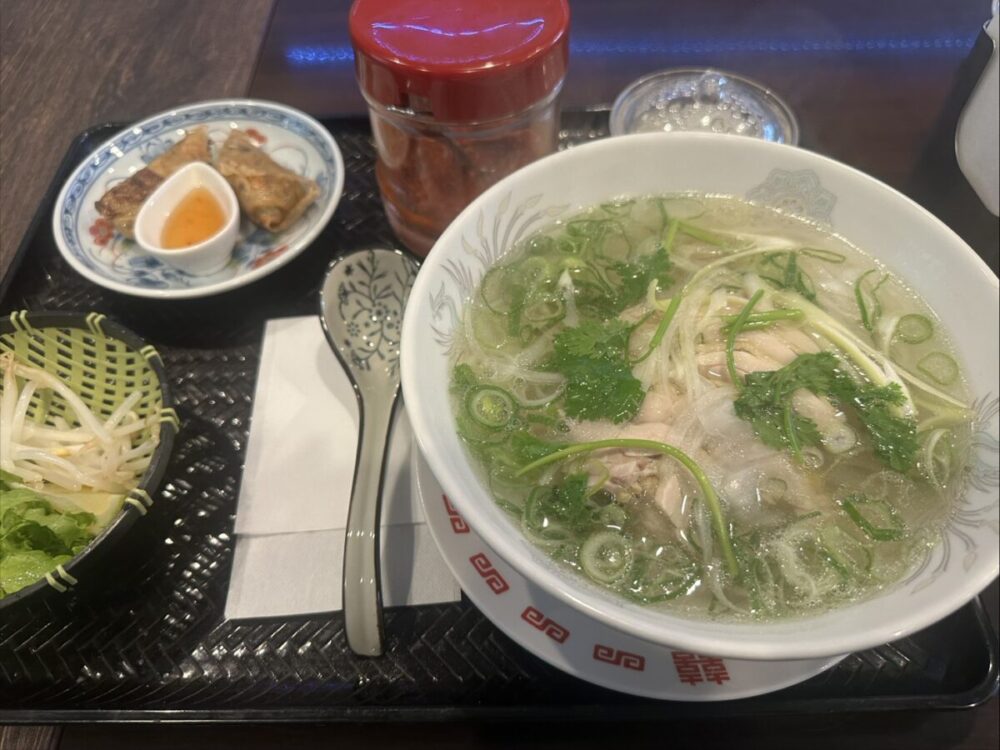 優しいコクが沁みる!鶏肉フォーと揚げ春巻きのセット