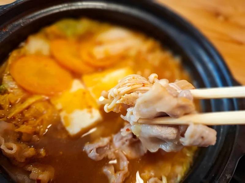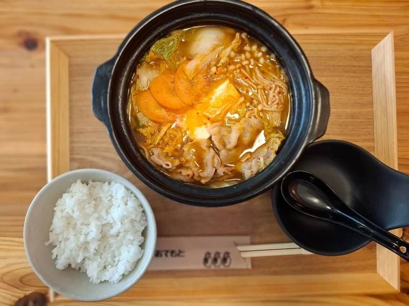 辛さは控えめ、病みつきの味「キムチ鍋定食」です。