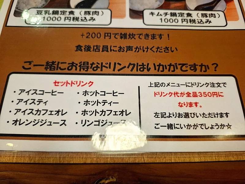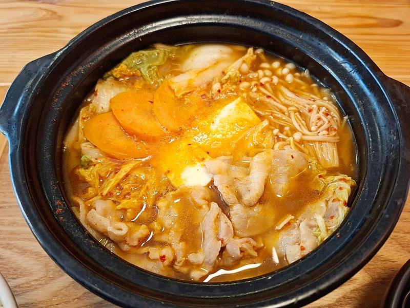 オーナーさんイチオシメニュー「キムチ鍋定食(豚肉)」1000円(税込み)
