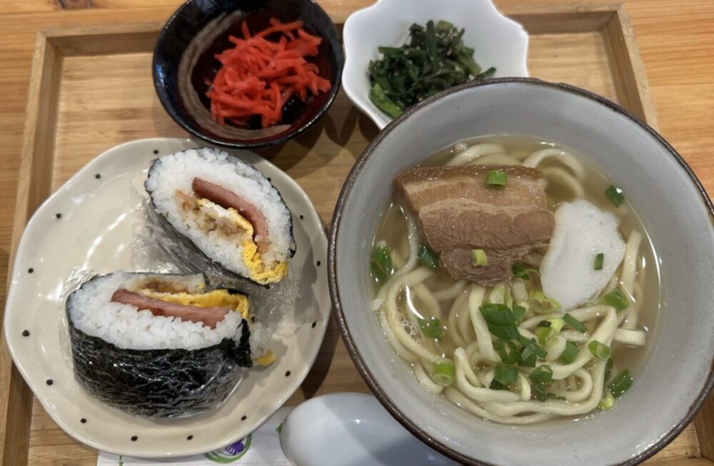 今回いただいたのは、「沖縄そばランチ ポーク玉子おにぎりセット」850円(税込み)です。