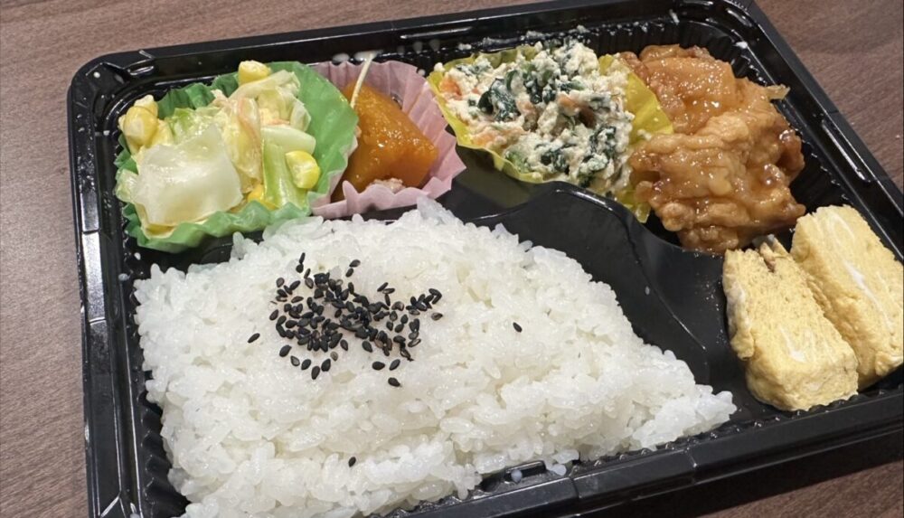 店内に入ると、作りたてのお弁当やお惣菜がずらりと並べられています。