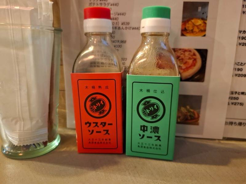 そのまま食べてもおいしいですが、味変にソースも設置されています。