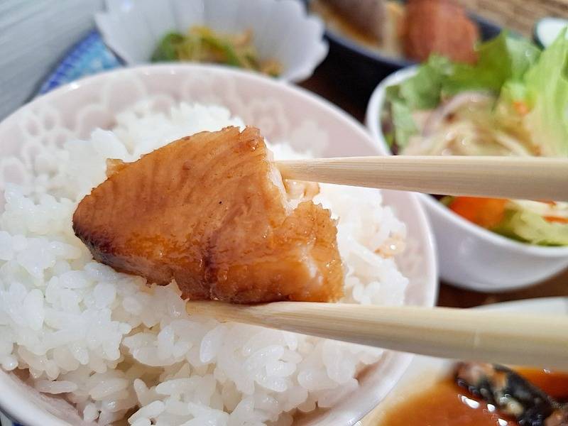 ご飯とのバランスをとりながら、別のおかずもいただきます。