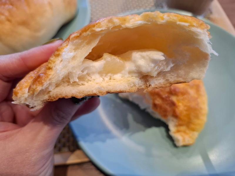 外側にはザラメ生地で、中にマスカルポーネクリームとパインが入ってジュージーなパンです♬