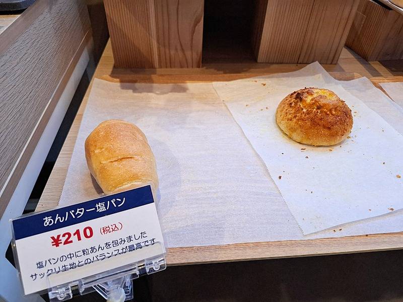 2025年オープン時からある定番パン「あんバター塩パン」210円(税込み)!