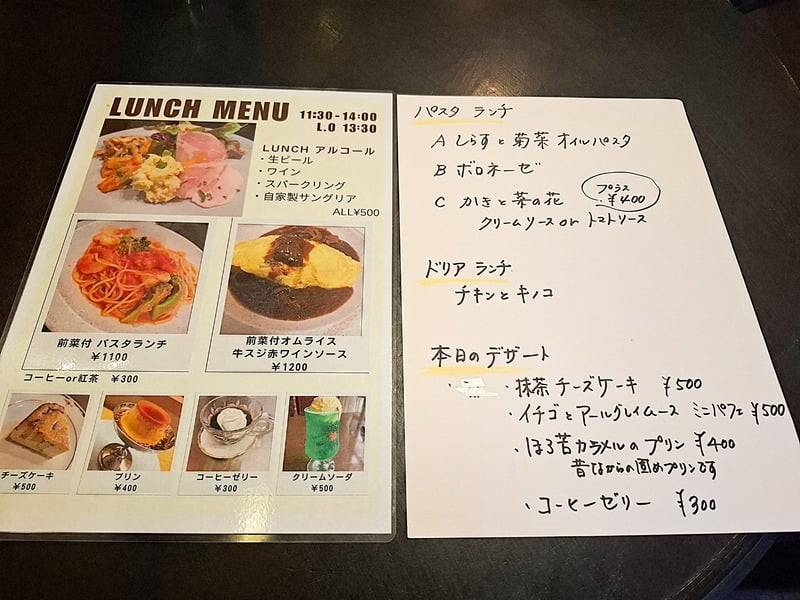 ランチメニューは、パスタ・オムライス・ドリアの3種類のメインから選ぶスタイル!