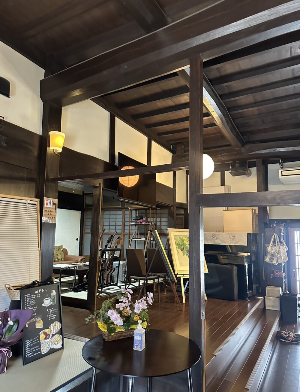 驚くのは、店内にピアノやギターなどの楽器が置かれていること。