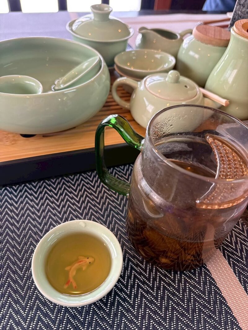 注文を終えて待っていると、とってもおしゃれな器に中国茶を淹れてくれました(^^)