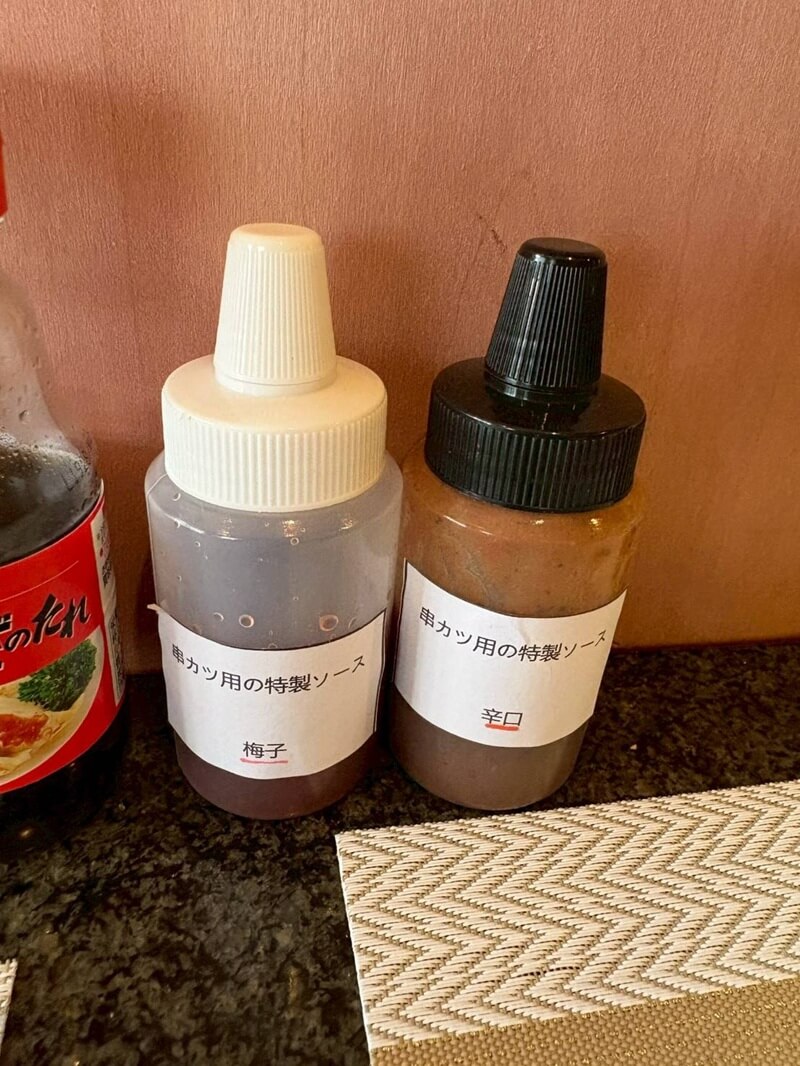 串カツは2種類の手作りソースを好みでつけて食べます!
