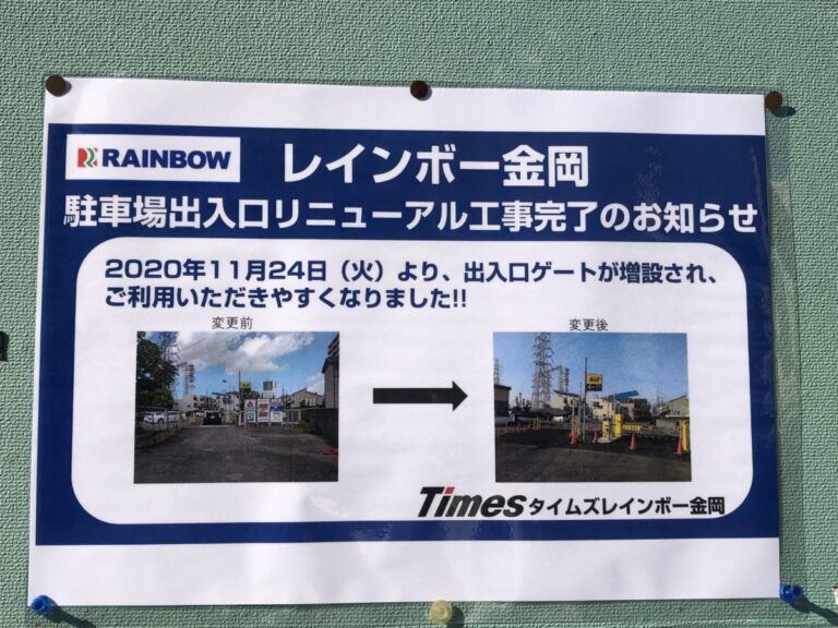 リニューアル工事が続いている堺市北区・新金岡の『レインボー金岡』ですが、併設されている駐車場『タイムズレインボー金岡』の工事が完了しています。